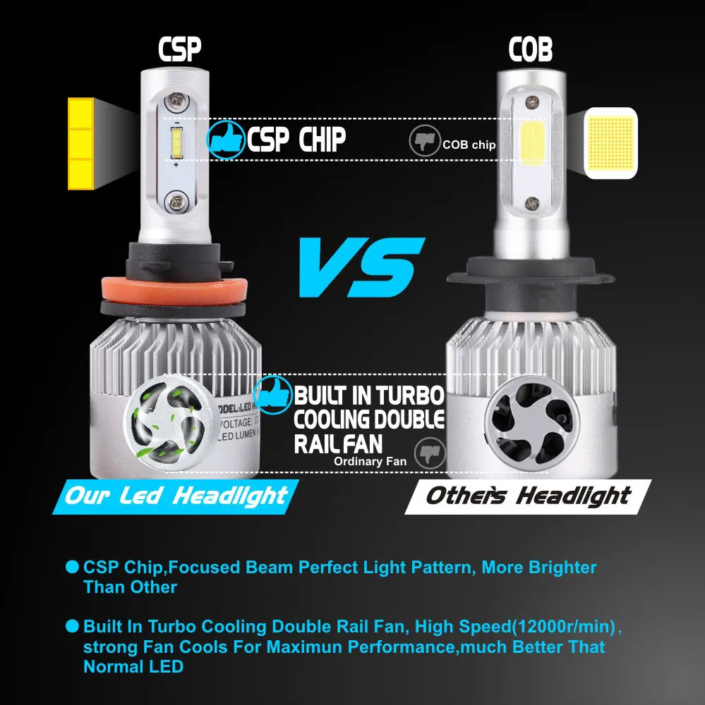 CarTnT H4 LED H7 H1 H3 HB4 H11 HB3 H8 CSP Chips Car Headlight Bulbs 72W 12000LM 6000K Car Styling 9005 9006 LED Automotive Bulb,2PCS H7 LED Bulb H4 H11 H8 H9 9005 9006 HB3 HB4 9012 9007 LED Car Headlight Bulb 16000LM Auto HeadLamp Car Styling LED 24V 6000K, 2PCS H7 LED Bulb H4 H11 H8 H9 9005 9006 HB3 HB4 9012 9007 LED Car Headlight Bulb 16000LM Auto HeadLamp Car Styling LED 24V 6000K