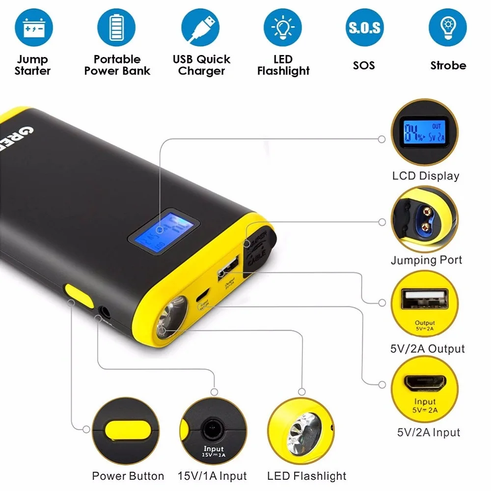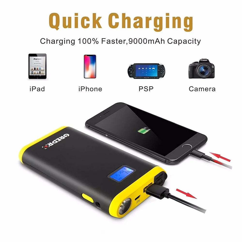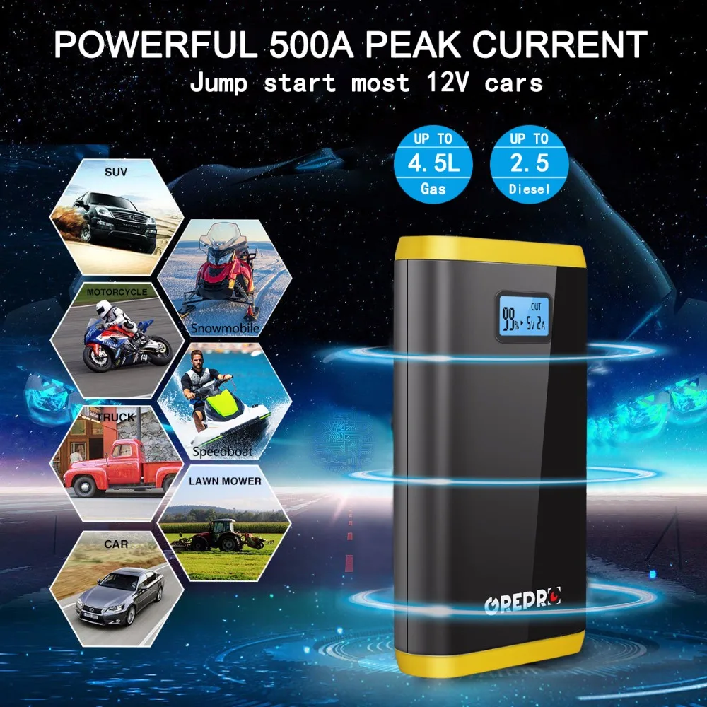 Greatest GREPRO Car Jump Starter 500A Auto Booster Battery 12V Car Buster Starter Vehicle Emergency Battery