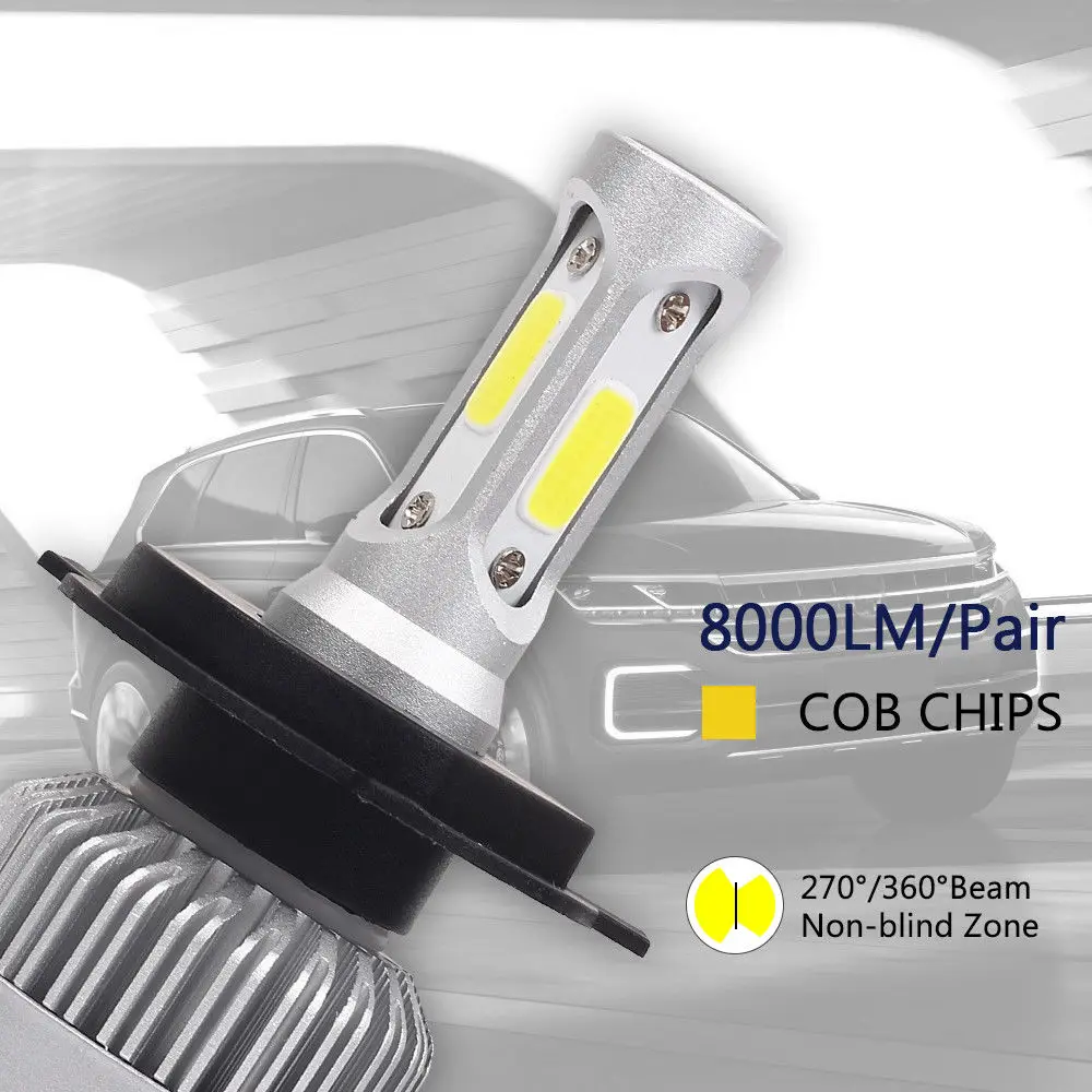 New S2 H4 H7 H11 H1 Car LED Headlight Bulbs 72W LED 9005 9006 H3 H13 9004 9007 Hi/Lo COB Auto Headlamp