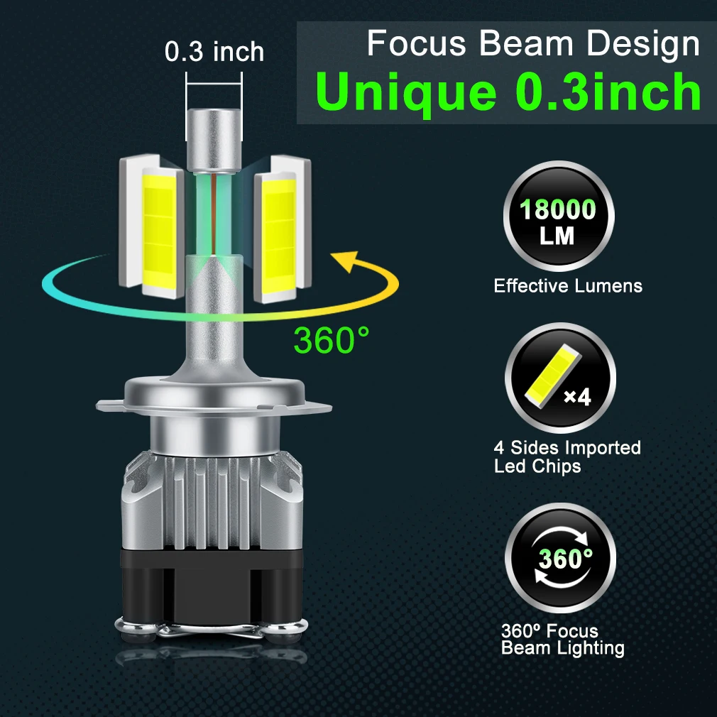 awesome 2pcs Mini Canbus H4 H7 LED Car Headlight 12V 18000LM Error Free H1 H11 HB3 9005 Hb4 9006 360° Focus