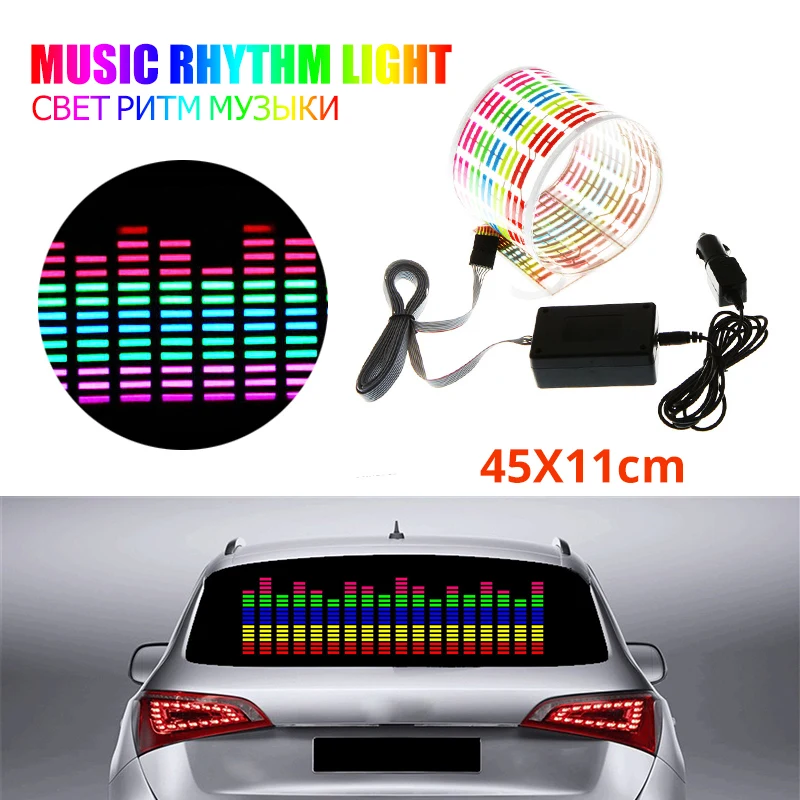 buy 45x11CM Car Sticker Music Rhythm LED Flash Light Lamp Car Rear Windshield Decorative Light Sound Ac